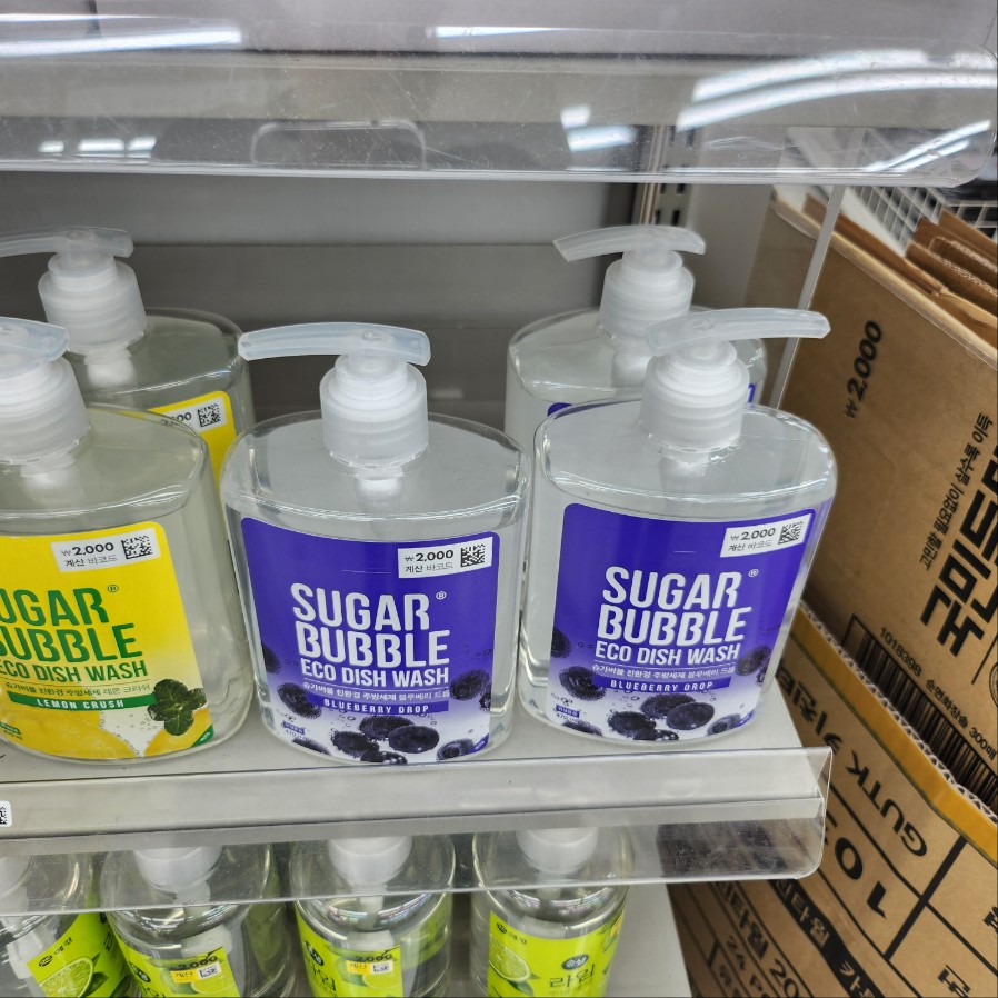 며칠 전 마침 세제가 똑 떨어져서 다이소로 향했는데요. 왠지 이번에는 지금 사용하고 있는 세제말고 다른 세제를 사보고 싶더라고요. 새로운걸 도전하는걸 좋아하는건지 ㅎㅎㅎ 그러다 발견한 슈가버블 친환경 주방세제! 저는 레몬향을 좋아해서 레몬 크러쉬향으로 구매를 했는데요. 가격은 무려 2,000원!!!!