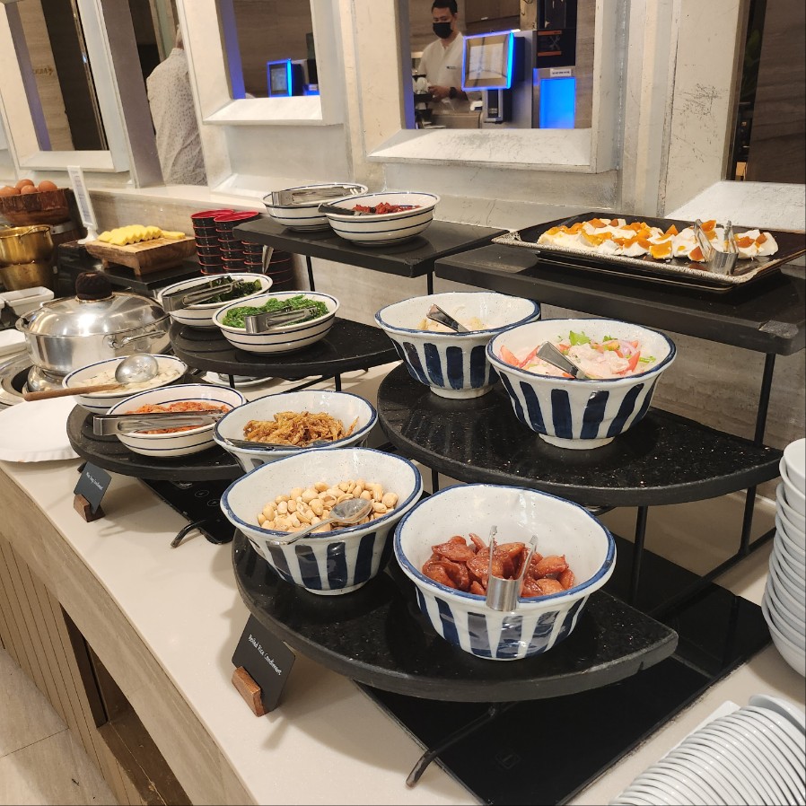 방콕 아속역 호텔 그랜드 센터 포인트 터미널21(Grande Centre Point Hotel Terminal 21) 조식 메뉴는 큰 틀은 비슷하긴 했는데 그날그날마다 다르게 나오더라고요. 야채 볶음 쌀국수가 나왔다가 다음날에는 넓적한 볶음면이 나오거나 피자빵이 나왔다가 코리안식 토스트도 나오고 ㅎㅎ 호텔은 조식 먹으러 오는 거 아닌가요 ㅎㅎ