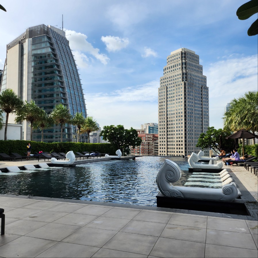 다행히 날씨가 나쁘지 않아서 바로 조식을 먹고 수영하러 가기로 했습니다. 방콕은 갈 때마다 느끼는 거지만 번화가는 우리나라 보다 더 번화한 것 같은 느낌이랄까. 관광이 활성화되어 있는 나라답게 호텔도 굉장히 많고, 백화점, 몰, 시장 등등 다니기가 정말 좋았습니다. 어디선가 본 적이 있는데 동남아 중에서는 밤에 다녀도 비교적 안전한 나라는 태국이 유일하다고 하더라고요. 태국도 지역마다 케바케겠지만.. 방콕 시내는 저도 밤 12시 넘어서 자주 돌아다니곤 하는데 그리 위험하단 생각이 안 들더군요. 굉장히 돌아 많이 다닙니다.