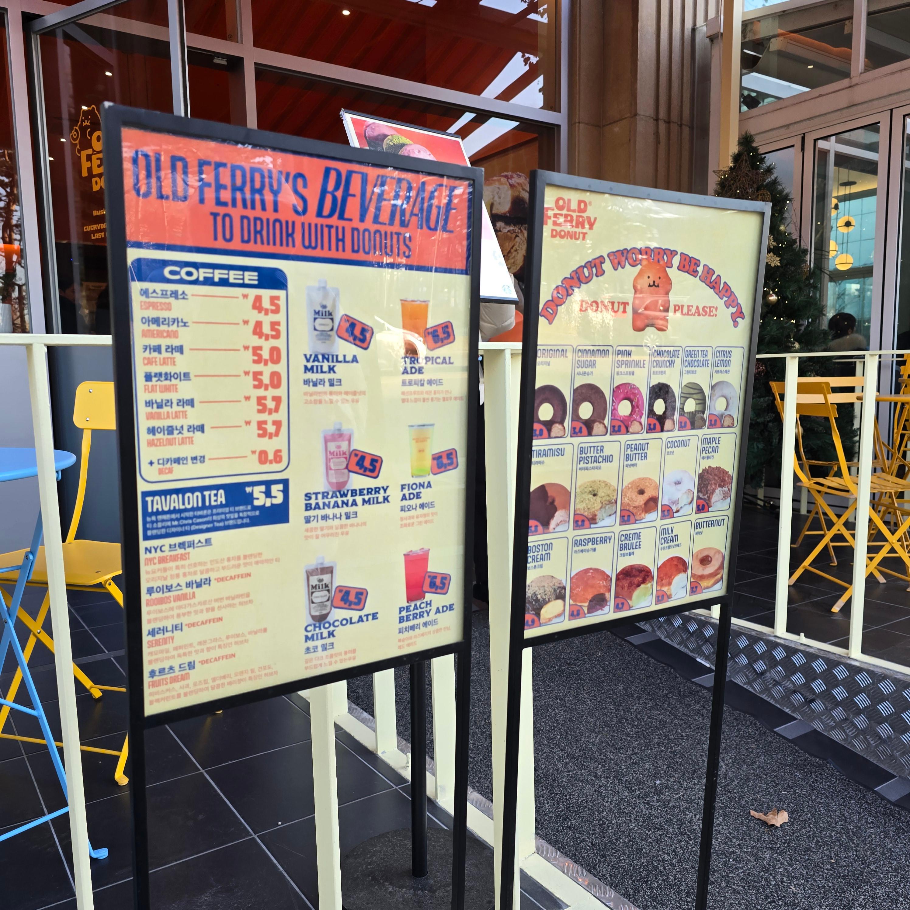 올드페리도넛 메뉴입니다.