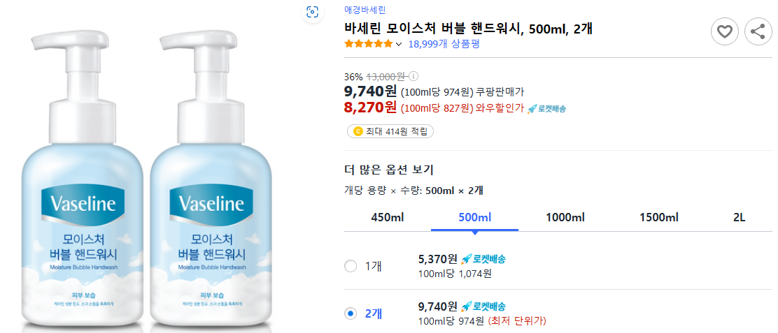 버블 핸드워시라서 거품을 따로 낼 필요 없는데다 용량이 500ml나 되기 때문에 오래동안 넉넉하게 사용할 수 있답니다. 가격도 좋아서 가성비 면에서도 추천할만한데요.