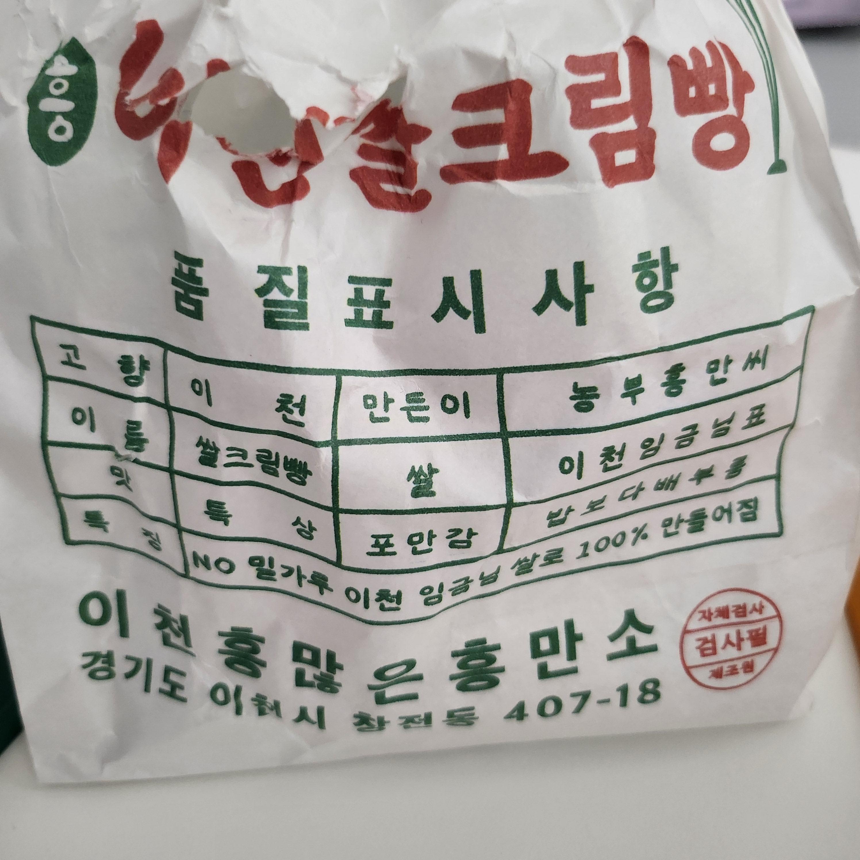 이천흥많은흥만소 노밀가루 쌀100%으로 만든 이천쌀크림빵