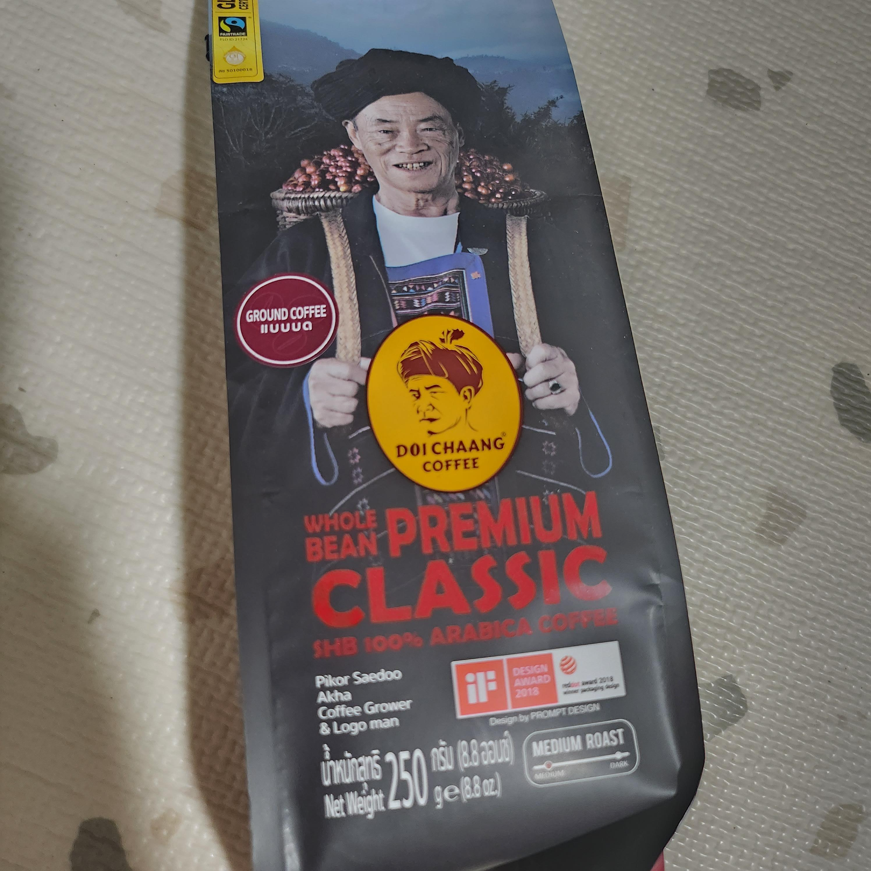 이건 인스턴트 커피는 아니고 원두 커피에요^^ 상위 1%에 속하는 World Class Specialty Coffe라고 하는데요. 소수민족인 아카족(Akha)이 산악지대에서 재배한 원두를 사용한다고 합니다. 유럽커피전문협회에서 스페셜티로 선정된 고급커피라 인기가 높은 커피입니다.